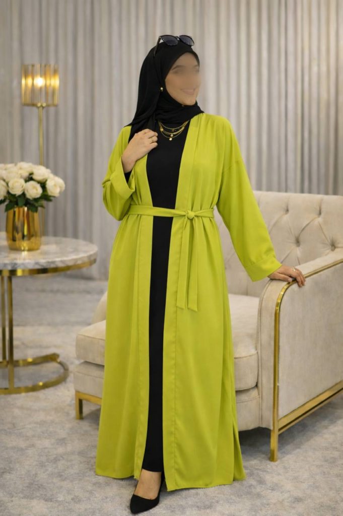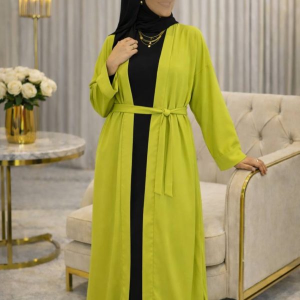 Découvrez notre superbe abaya fluide, ornée d’une ceinture à nouer pour sublimer la silhouette. Son tissu léger et raffiné offre un tombé parfait, idéal pour toutes les occasions.